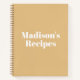 Elegant camel beige and white minimalist modern personalized Custom Name text monogram Recipe Book Or Notebook.