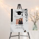 Modern graduation party sign featuring a black graduation cap at the top with handwritten script accents on a white background. Personalize the simple graduation sign with the graduate's name, school name, and graduation year below. The trendy graduation sign is perfect for both high school and college graduates!