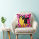 Modern Cat Lover Pet Friends Flower Pattern Pink Throw Pillow