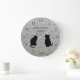 Modern cat silhouettes monogrammed wood pattern large clock