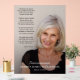 A celebration of life acrylic sign features "Forever in our hearts," a photo of your loved one, their name, details and a poem or a prayer on the side.