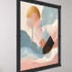 Immerse your space in the tranquil beauty of "Celestial Harmony." This enchanting abstract artwork features a dreamy composition of geometric shapes, celestial bodies like a golden sun, and soft pastel clouds. The serene palette of dusty pink and soft blue is highlighted by elegant gold line work, creating a sense of peace and modern sophistication. Perfect for adding a touch of cosmic elegance to a bedroom, nursery, or a quiet office space, this piece invites a moment of calm reflection.