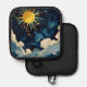 Enhancing the celestial charm are whimsical clouds in dark blue, light blue, white, and gray. These clouds are artistically rendered, providing texture and movement to the design. The interplay of these clouds with the celestial elements creates a dynamic and visually captivating scene that is both modern and enchanting. This design is perfect for anyone who loves the mystical beauty of the sky and the celestial bodies that adorn it.