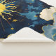 Enhancing the celestial charm are whimsical clouds in dark blue, light blue, white, and gray. These clouds are artistically rendered, providing texture and movement to the design. The interplay of these clouds with the celestial elements creates a dynamic and visually captivating scene that is both modern and enchanting. This design is perfect for anyone who loves the mystical beauty of the sky and the celestial bodies that adorn it.