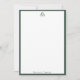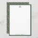 Modern and simple, green Celtic knot logo and frame, personalized with name, note card. Back of card features, coordinating Celtic knot pattern in satin moss green color