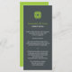 A modern look for a Celtic wedding menu. A charcoal grey background offsets a single Celtic knot. Simple clean typography follows to indicate the menu at an Irish-themed occasion. The reverse is a solid lime green, but can be customized to any color by clicking the "Customize It" button and selecting a new background color from the drop down "edit" menu. Add a customized menu underneath. Available with matching products.