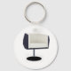 This design is some cool modern furniture. It is a modern chair isolated on a white background. The chair has a swivel leg and is white with black trim. This modern chair design looks great on this Keychain