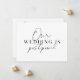 A wonderful modern and simple typography Our Wedding Is Postponed wedding announcement card. Minimalist black and white design with typography style font on front and back. Back of card says "We Can't Wait Until We Can Gather Again". Add your own personal message to send to your wedding guests to let them know to check your wedding website and that a new rsvp card will be mailed when the time is right.