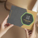 Elevate your brand with this strikingly modern business card. Featuring a bold geometric hexagon design in rich charcoal gray, accented with sophisticated gold/tan and a pop of vibrant green. Perfect for consultants, designers, architects, and any professional seeking an unforgettable, high-impact first impression. Fully customizable.