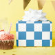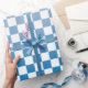 Modern light to dark blue gradient and white checkered pattern adds a stylish accent to your presents.