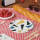 Modern, cheerful, fun, vibrant geometric pattern paper plates
