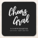 Modern Cheers Grad Brush Script Graduation Square Paper Coaster