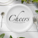Modern Cheers Script | Black & White Wedding Paper Plates