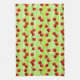 Modern kitchen towel with a cherry pattern on green stripes. Personalize with your name.
