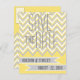 Modern chevron grey, yellow wedding Save the Date postcard that features a modern zigzag chevron pattern in yellow, gray and white. This elegant design is great for modern brides with its large modern typography but suitable for a traditional wedding too because of the classic chevron stripes. It is a template, part of a wedding set and can be used for any season i.e. spring, summer, fall or winter weddings. Just change background color- yellow - to the color of your liking by clicking “Customize it” to choose from hundreds of colors.