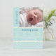 Customize this modern and chic baby birth announcement card with your sweet baby's photo and details. The card features a blue chevron pattern.