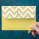 Modern chevron grey, yellow wedding envelope with initials that features a modern zigzag chevron pattern in yellow, gray and white. This elegant design is great for modern brides with its large modern typography but suitable for a traditional wedding too because of the classic chevron stripes. It is a template, part of a wedding set and can be used for any season i.e. spring, summer, fall or winter weddings. Just change background color- yellow - to the color of your liking by clicking “Customize it” to choose from hundreds of colors.