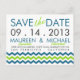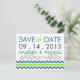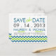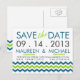 Nautical teal blue and lime green on white with modern style zigzag pattern for wedding invitations and Save the Date announcements. Alternating chevron stripes with and bold and trendy sans-serif typography. Use the Customize button to move or change text styles.