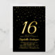 Modern Chic Black and Gold Stars Sweet 16 Birthday Foil Invitation