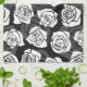 This modern floral pattern features stylized grey and white roses on a black backgroud. The design creates a sophisticated, romantic look. This is an elegant and chic print, perfect for adding a touch of glam and designer style to any item.