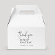 This modern chic black and white thank you wedding favor box is perfect for a simple wedding reception. The minimalist boho design features rustic unique and stylish bohemian typography in minimal clean black and white. Personalize the boxes with your names, and the date. These favor boxes can be used for a wedding reception, bridal shower, or any event!
