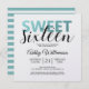 Modern Chic Blue White Stripes Pink Sweet 16 Invitation