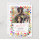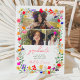 Add a touch of bohemian elegance to your graduation party with our Modern Chic Boho Bright Elegant Colorful wild flowers Announcement. Featuring pink, red, green, and purple hues botanical flowers inspired by wildflowers and watercolor rustic gardens with subtle greenery and modern boho script typography. Add 3 photos to celebrate the graduate.