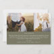 This modern chic green photo overlay new year news holiday card is the perfect stylish holiday greeting. This simple boho design features classic sophisticated calligraphy in rustic olive green and white. Personalize the front of the card with a photo, your family name and the year. Include 2 additional photos, and an optional year in review or family newsletter on the back of the card.