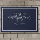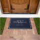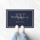 Welcome Visitors with this Modern Chic Monogram & Script Name & Date Front Doormat. Personalized white, grey monogram design with bride and groom last name and date established on a navy blue background. A unique cool gift for newlyweds. Lovely for their new life together. Click personalize this template to customize it quickly and easily. Ships Worldwide fast.