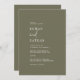 Having your Modern Chic Olive Green Casual Wedding Invitation match the theme of your party is a great detail that your guests will appreciate. The thoughtfulness of a consistent party theme is often appreciated and can show your guests that you can host a cohesive event.