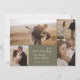 This modern chic olive green photo collage save the date card is perfect for a simple wedding. The woodsy boho design features rustic unique and stylish bohemian typography in a minimal woodland forest green color.