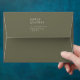 These modern chic olive green wedding envelopes are perfect for a simple wedding. The woodsy boho design features rustic unique and stylish bohemian typography in a minimal woodland forest green color.