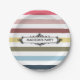 Modern Chic Rainbow Stripes With Party Name Paper Plates