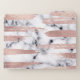 Modern, chic, girly, and elegant faux printed rose gold brushstrokes on black and white marble stone background.
