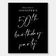 This modern 50th birthday party welcome sign features a chic black background with white script and modern typography. The script says "50th birthday party". Looks fabulous on an easel near an entrance!