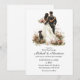elegant modern chic script budget wedding invitation ,with bride and groom watercolor illustration