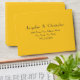 Modern chic script personalized bride and groom names elegant soft warm yellow self-addressed RSVP envelope. Click personalize this template to customize it with the first names of the bride and groom and the RSVP address quickly and easily. These simple elegant soft warm yellow self-addressed RSVP envelopes are perfect for a simple wedding. Modern chic script elegant self-addressed RSVP envelope, is part of the Soft Yellow Wedding Collection in this store, which offers a beautiful range of wedding items. 30 Day Money Back Guarantee. Ships Worldwide Fast.