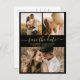 Elegant modern black and gold script 3 photo collage wedding save the date announcement postcard. Chic minimalist design template feature three (3) couple photo collage and elegant cursive hand lettering typography script „Save the Date” text in gold on black background color. If you need help or matching items, please contact me.