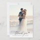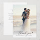 A modern wedding thank you photo card design with elegant lettering and a custom thank you message to your guests at the back. You can freely customize the image and other details.