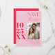 This modern save the date card features a sleek and minimalist design, perfect for couples who love a clean and sophisticated aesthetic. The card prominently displays the wedding date in bold, large typography on the left side, ensuring that the date stands out and is easily noticed. On the right side, there’s a dedicated space for a photo of the couple, adding a personal touch to the announcement. The text is elegantly arranged in a contemporary font, keeping the focus on the essential details like the couple's names, wedding date, and location. The use of hot neon pink and retro pastel pink creates a timeless look, making this card a stylish choice for any modern wedding.