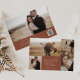 This modern chic terracotta rust photo collage save the date card is perfect for a simple wedding. The desert boho design features rustic unique and stylish bohemian typography in an earthy burnt orange rust color. Personalize your card with 5 engagement photos, your names, wedding date, and wedding website address. Include a QR code so your guests can easily scan it for more wedding info.