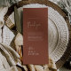 This modern chic terracotta rust thank you table card is perfect for a simple wedding reception. The desert boho design features rustic unique and stylish bohemian typography in an earthy burnt orange rust color.