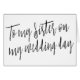 A modern, chic and pretty calligraphy style "To my sister on my wedding day" card, perfect to give her on your wedding day.