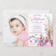 Modern chic wildflower script photo 1st birthday invitation