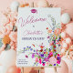 Elegant modern spring summer flowers illustration with pretty wild flower and brush script welcome graduation sign with a modern calligraphy typography with red, purple, pink , terracotta flowers on white background