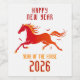 Modern Chinese Horse New Year 2026 Wine Bottle Label. A simple running horse painting for Chinese zodiac horoscope animal for 2026. It captures the spirit and motion of the horse. Warm red and gold accents symbolize the fire element.