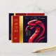 Modern illustration of a snake in red colors (model n°5). Design on holiday postcard + 2025 + Wishes in Chinese and English and "Year of the Snake" + texts to customize in the back of the card with the same snake in small size on the corner. Matching greeting card, sticker (and more soon)... Perfect for Chinese New Year of The Snake 2025.