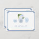 Meal options RSVP response card with watercolor ginger jar illustrations by me (please note that the flowers / leaves are not by me). You can move, delete or add text fields by entering the design tool. You can also change the contrast color of the Greek Key border on the front and the pattern on the back (shown here as a dark blue) to any color you like by entering the design tool (underneath the text customization area, click to "customize further") then changing the background color on each side.