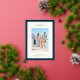 Modern Christmas Beige & Blue Photo Frame Silver Foil Holiday Card
