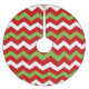 A holiday chevron pattern is featured on this custom tree skirt. Shown in red, white and green.